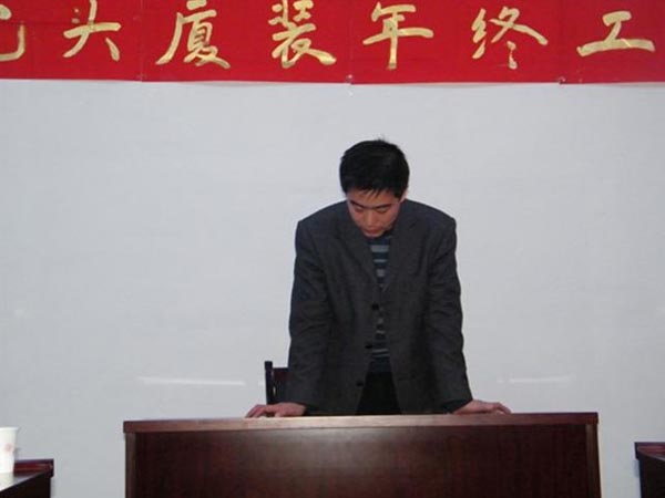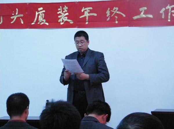 隨著新年鐘聲的臨近,我司于2010年12月31日,下午13:30分在公司三樓會議室召開了2010年年終工作總結(jié)及優(yōu)秀員工表彰大會。此次會議目的既是讓大家對公司成立以來的熬人業(yè)績、明年的整體發(fā)展趨勢、任務(wù)指標(biāo),以及公司對每位職工工作的肯定做了一一講解。營造全體員工團(tuán)結(jié)凝聚、以廠為家、共同奮進(jìn)的氛圍,回顧過去我司做出了當(dāng)年建廠、當(dāng)年投產(chǎn)、當(dāng)年銷售的令人矚目成就。通過此次會議,公司全體同仁堅信在大家共同努力下,我司產(chǎn)品必能遍布內(nèi)蒙古中西部及陜北地區(qū),并且在所有同行當(dāng)中永居鰲頭,成為全內(nèi)蒙、全國、全世界第一品牌。